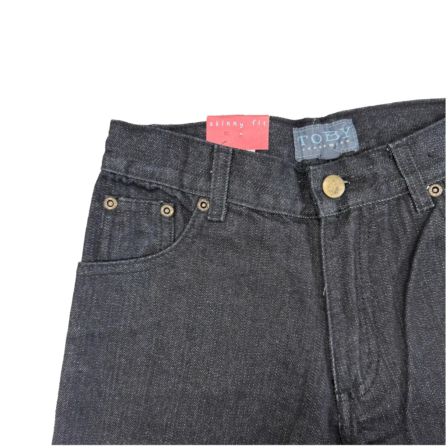 These boys' black denim jeans feature an adjustable waist for a comfortable, customized fit that grows with your child. Crafted from durable denim, they offer both style and resilience for everyday wear. Ideal for active kids, these jeans combine practicality with a classic look.