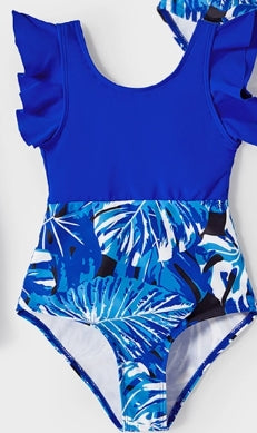 This girls' blue one-piece swimsuit combines softness and comfort with a durable blend of 82% polyester and 18% spandex. Designed for ease of care, it is machine washable and can be tumble dried without losing its shape or color. Ideal for active young swimmers, it offers a snug fit that moves with the body.