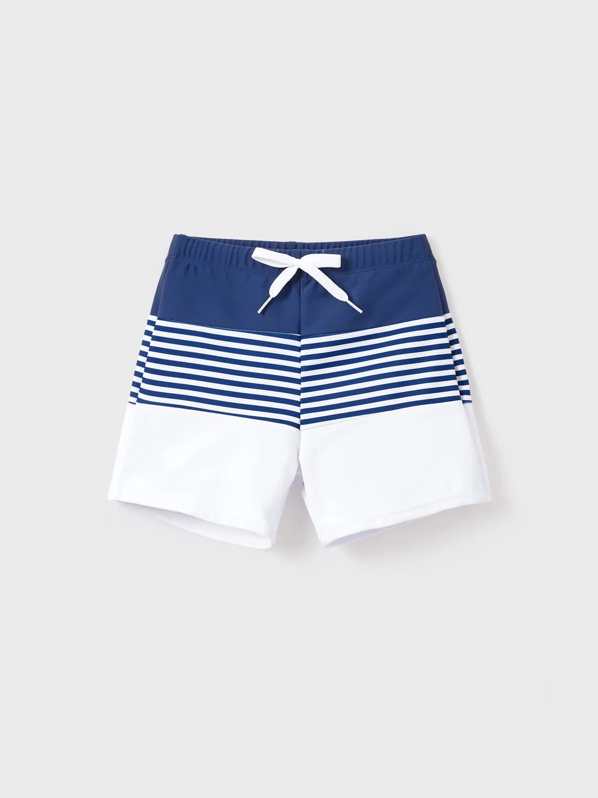 Toddler Boy Blue Block Colored Adjustable Swim Shorts